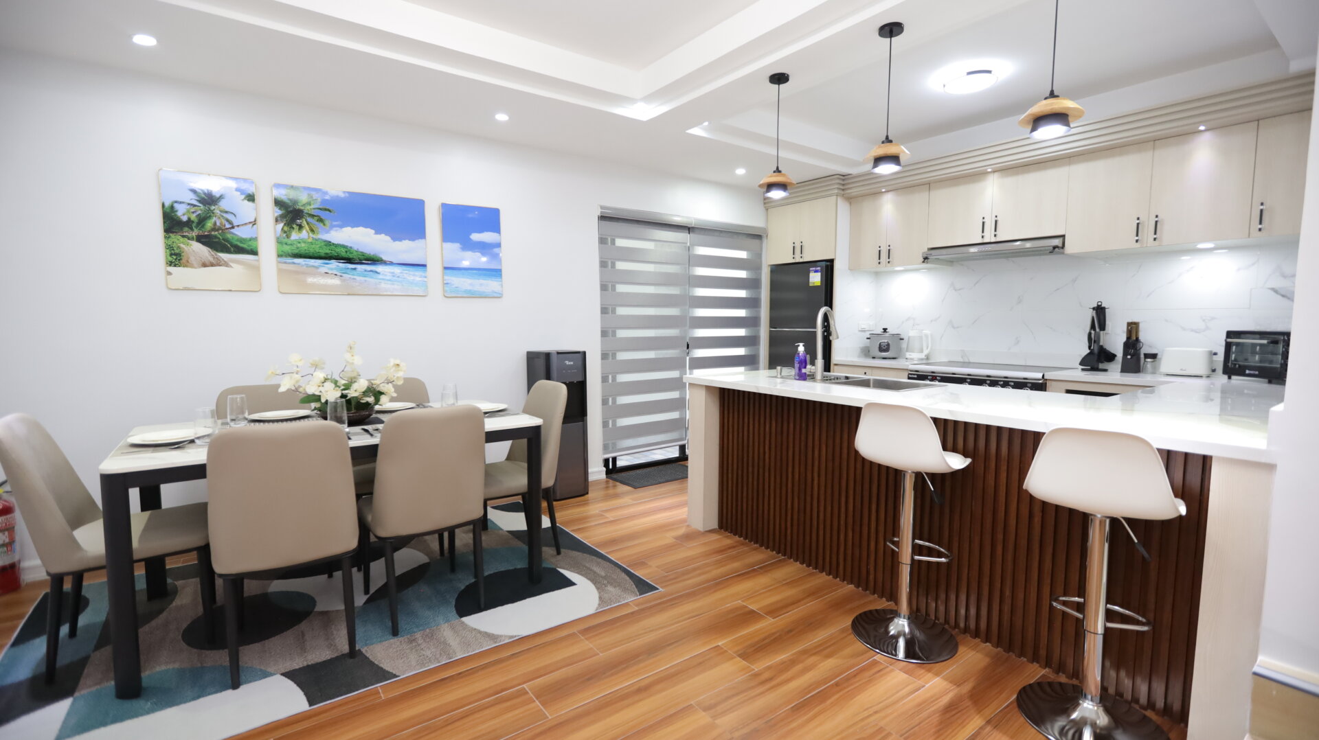 Welcome to Villa #1 at AquaBlue Villa, your private escape designed for both comfort and style. With warm modern interiors, open living spaces, and thoughtful details, this villa is perfect for families, groups of friends, or couples looking for a relaxing getaway in Pampanga.
