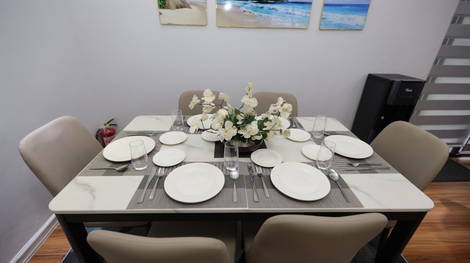 Cook and dine with ease in the sleek, fully stocked kitchen. Featuring a stove, oven, refrigerator, microwave, cookware, and—best of all—an automatic plate dishwasher so you can spend less time washing dishes and more time enjoying your stay. Share meals at the elegant dining table or enjoy casual bites at the modern breakfast bar.